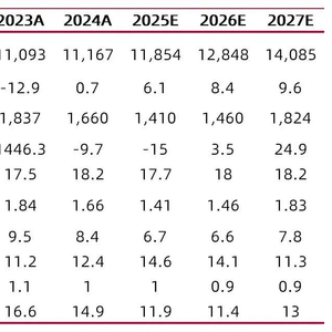 我们预计公司2025-2027年营收分别为118.54、128.48、140.85亿元;归母净利润分别为14.10亿元、14.60亿元、18.24亿元,EPS分别为1.41、1.46、1.83元,对应PE分别为15、14、11倍,首次覆盖,给予“增持-A”评级。