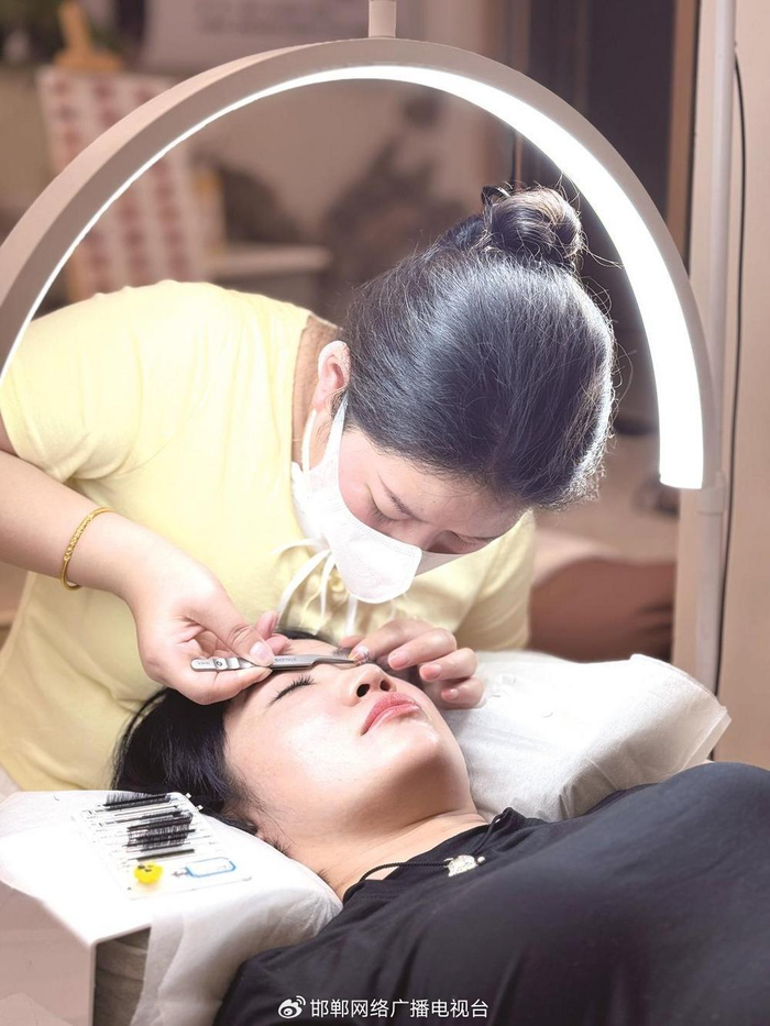 美睫师正在进行上门美睫