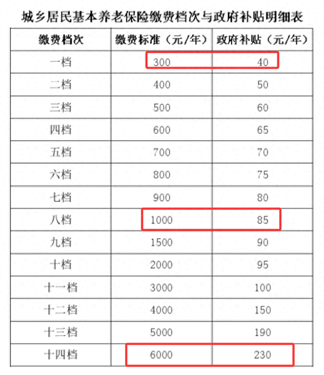 财政补贴方面,300元档次补贴40元,1000元档次补贴85元,6000元档次补贴230元。