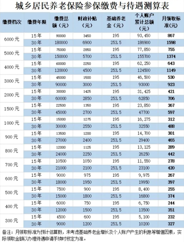 我们可以算一下这其中的养老金差距,比如按每年500元档次缴费15年,合计7500元,参照2024年基础养老金标准和银行的优惠利率,可以算出每月养老金大概273.32元,一年就是近3300元,2年就可以回本。