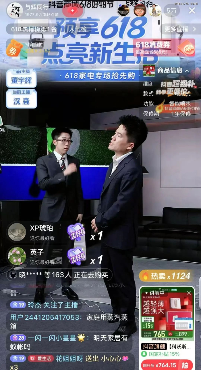 618首播当天,除了与电视商家谈判,董宇辉在讲解某品牌空调时,也上演了和品牌商谈判的一幕。