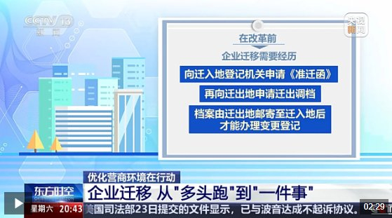 天津市市场监管委政务服务处副处长 刘永超:我们建立了企业迁移联络机制。取消申请迁出环节,把迁入申请、档案移交、变更登记三个环节整合为一个环节。