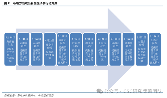 地方政策加速落地推进中。3月16日中办、国办印发《提振消费专项行动方案》后,近期各地方纷纷因地制宜出台具体提振消费行动方案。以《上海市提振消费专项行动方案》为例,包括7个方面32条具体内容,重点关照服务消费、消费更新、新型消费等方向,并从城乡居民增收、消费能力支持、消费环境提升、完善支持政策等方面提供政策保障。去年以来“两新”政策取得了显著的成效,地方政策落地后,消费活力有望进一步激发。