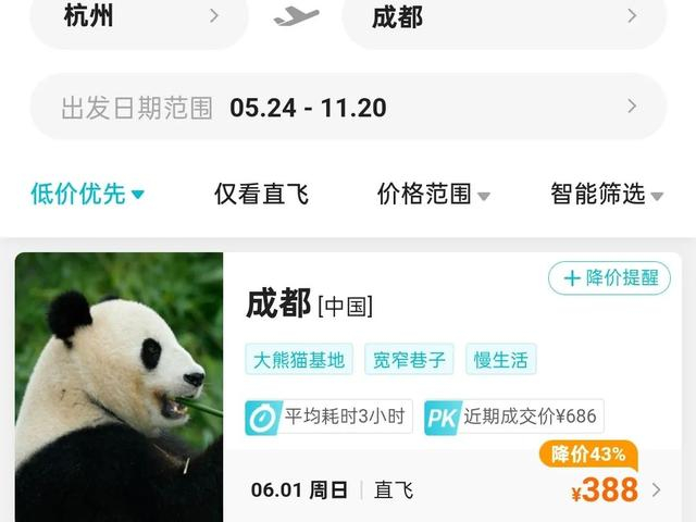 从近期机票价格走势看,近期至六月中旬,国内和国际机票价格回落明显,除端午节假期效应会有小幅上涨之外,整体价格涨幅不会超过“五一”。淡季酒店价格相对节假日也会有明显优惠,相较“五一”出游高峰,淡季酒店价格可能出现腰斩或更多。以成都春熙路附近某酒店为例,“五一”假期价格在七八百元,五六月份出游则不到四百元左右。