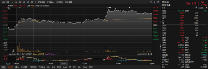 舒泰神周五发布机构调研纪要表示,公司创新药治疗领域主要聚焦在感染性疾病、呼吸与重症、自身免疫系统疾病及神经系统疾病治疗药物等领域,公司计划用完善的技术平台、成熟的研发团队、对科学和疾病的理解去满足尚未被满足的临床强需求。目前公司已经取得两个突破性疗法认定。公司的HIV项目仍在继续推进,目前处于临床前阶段。二级市场上,舒泰神周五收盘涨近12%。