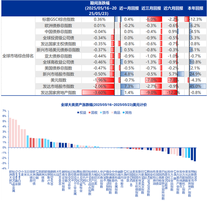 评级下调后美债拍卖预冷,美国再次遭遇股债汇三杀 ——全球资产配置每周聚焦 (20250516-20250523)