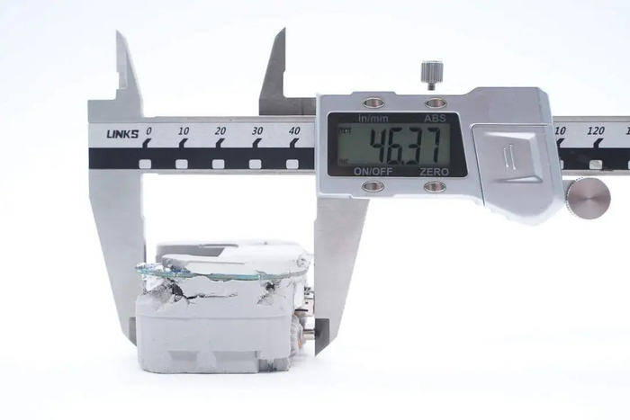 使用游标卡尺测得PCBA模块长度约为46.4mm。