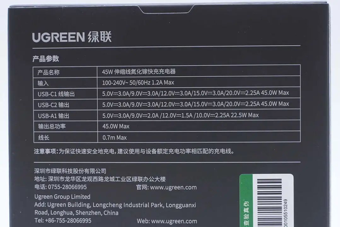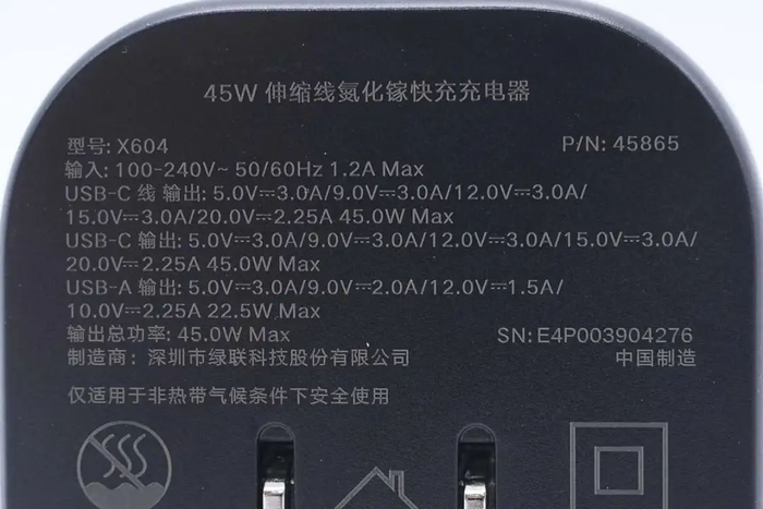 拆解报告:绿联45W伸缩线氮化镓充电器