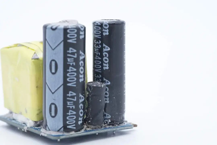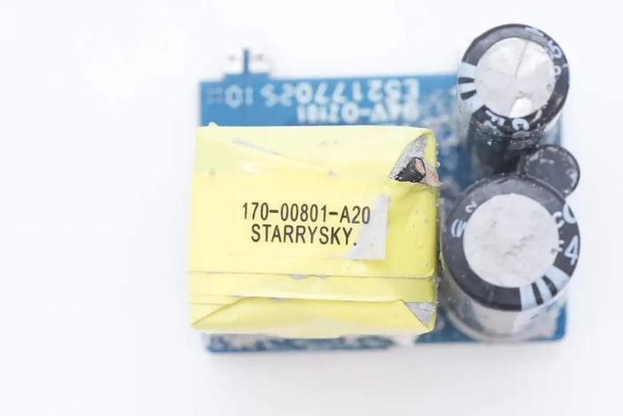 侧面小板焊接高压滤波电容,差模电感和变压器。