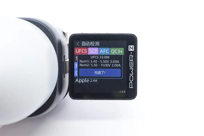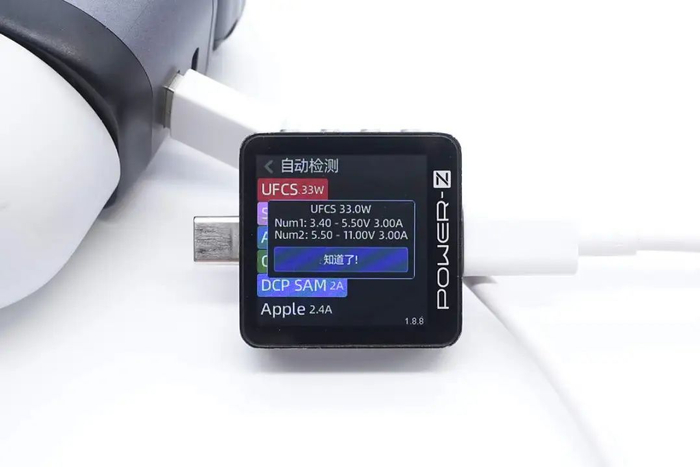 UFCS融合快充具备3.4-5.5V 3A、5.5-11V 3A两组电压档位。