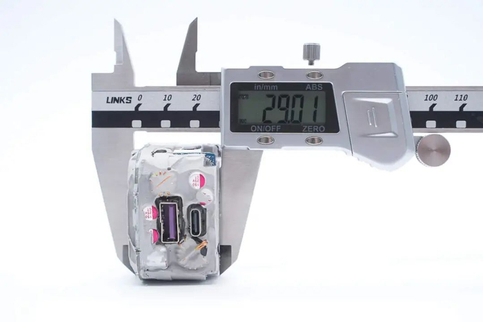机身另一侧设有伸缩线,USB-C接口和USB-A接口。