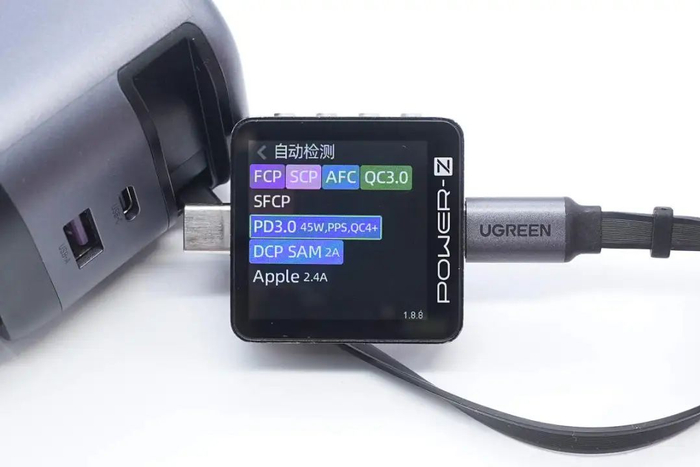 USB-A接口支持UFCS、SCP、AFC、QC3+、SFCP、DCP、SAM 2A、Apple 2.4A充电协议。