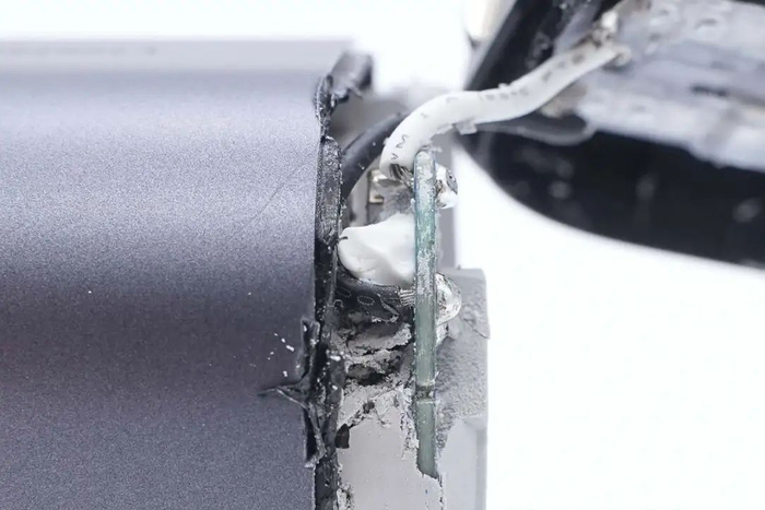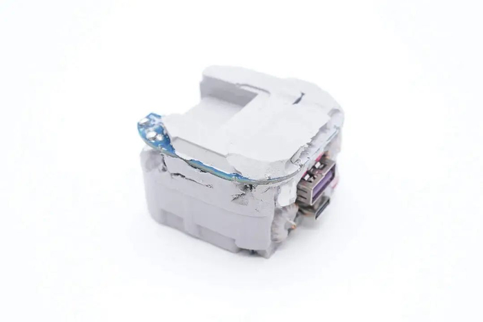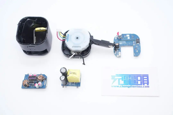 首先沿机身接缝拆开充电器外壳,内部PCBA模块采用导热胶填充灌封。