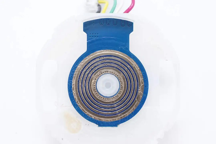 拆开伸缩线模块,内部设有PCB滑环和电刷。