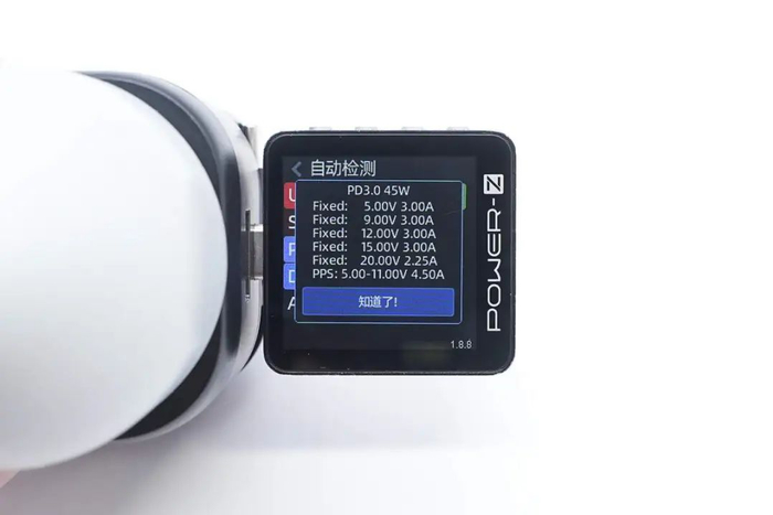 PDO报文显示伸缩线还具备5V3A、9V3A、12V3A、15V3A、20V2.25A五组固定电压档位,以及5-11V 2.75A PPS电压档位。