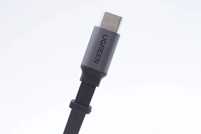 伸缩线插头采用金属外壳,印有UGREEN绿联品牌。