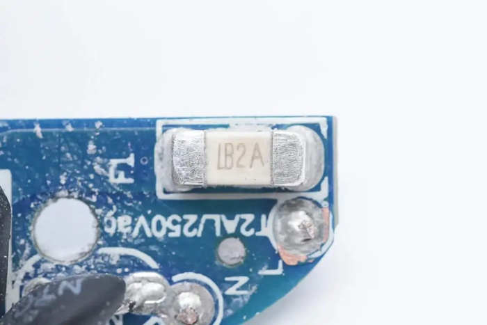 输入端贴片保险丝来自蓝宝,规格为2A 250V。