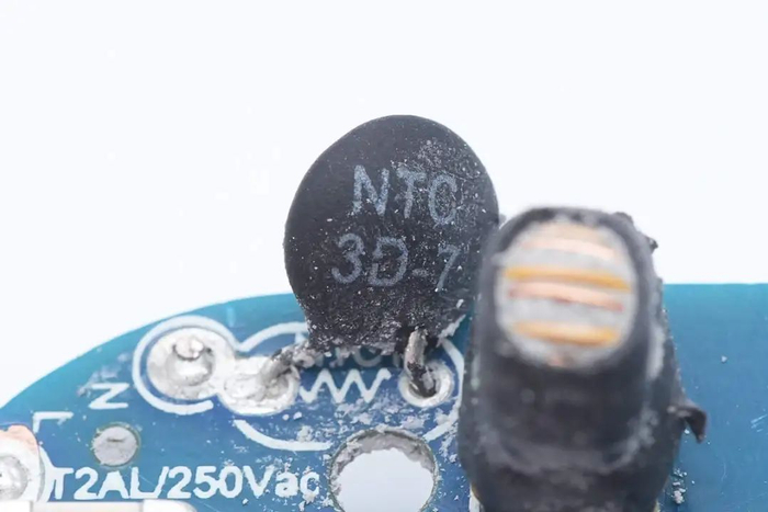 NTC热敏电阻丝印3D-7,用于抑制上电的浪涌电流。