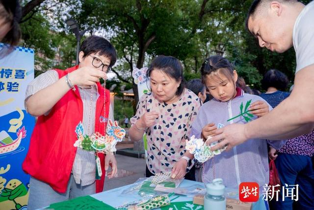 集市烟火气十足,萌趣的IP形象“小玉”“小泉”空降现场秒变顶流打卡点。包粽子、做龙舟、射五毒……互动区化身“亲子乐园”,民俗成为连接代际的桥梁,全家齐上阵让传统文化焕发新生,不仅传承了传统习俗,更将节日转化为增进社区凝聚力的契机,让城市的“细胞”充满温度。在烟火升腾之际,安全与文明的底色亦不可忽视。安全茶摊将安全茶饮与安全宣传册“打包”赠送,“粽子+环保”主题的垃圾分类宣传则让传统习俗与现代文明理念并行,赋予节日更深层的社会意义。