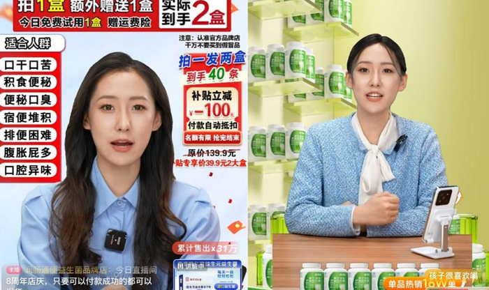 直播带货中存在的一些问题,消费提示至少给出了一些“避坑”办法,但还有一些问题,比如利用话术去营造紧张氛围,消费者似乎根本无从应对。但有些营销话术难辨真假,还有的则百分百是在忽悠。记者辗转于各家带货直播间时,有时会出现一种“既视感”,总觉得这个直播间主播的脸有些熟悉。对比后才发现,有些直播间,用的就是长相完全一样的同款AI数字人,只不过卖的东西并不一样而已。