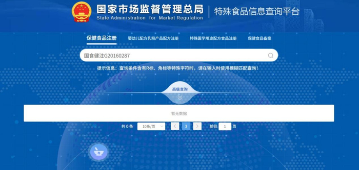 通过官方的查询平台,记者发现了这起普通食品冒充保健食品的情况,但平台的查询功能仍有待完善。原本想的是复查一下之前那几个直播间的“小蓝帽”,但记者将对应的批准文号输进查询系统,却一件产品也查不到。