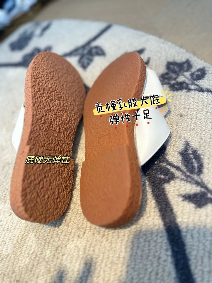 鞋底软,可是凉拖的精髓。市面很多跟风款,看起来舒适,鞋底硬的像石头。