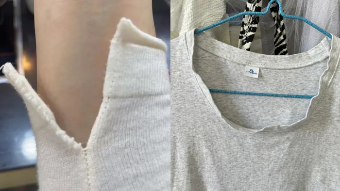 这主要得益于它的领口、肩线处都用了二本针进行加固。