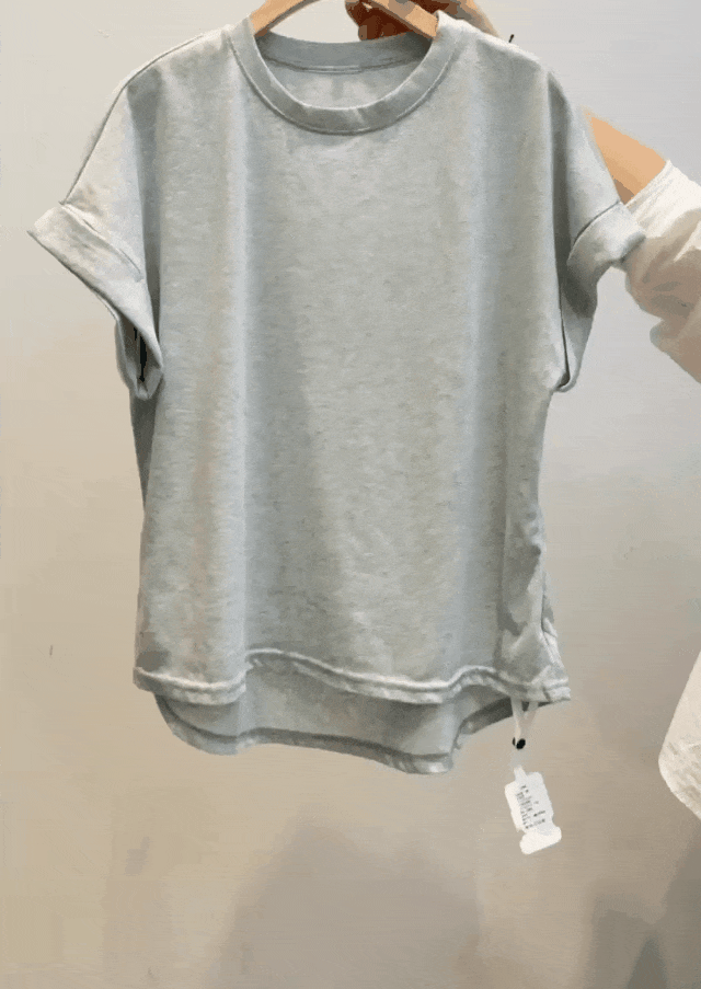 衣摆处也有小巧思,它不跟常规T恤那样整整齐齐,而是“前短后长”的设计。