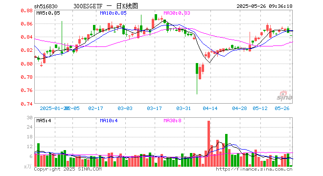 300ESGETF(516830)开盘跌0.36%,重仓股贵州茅台跌0.17%,招商银行跌0.36%