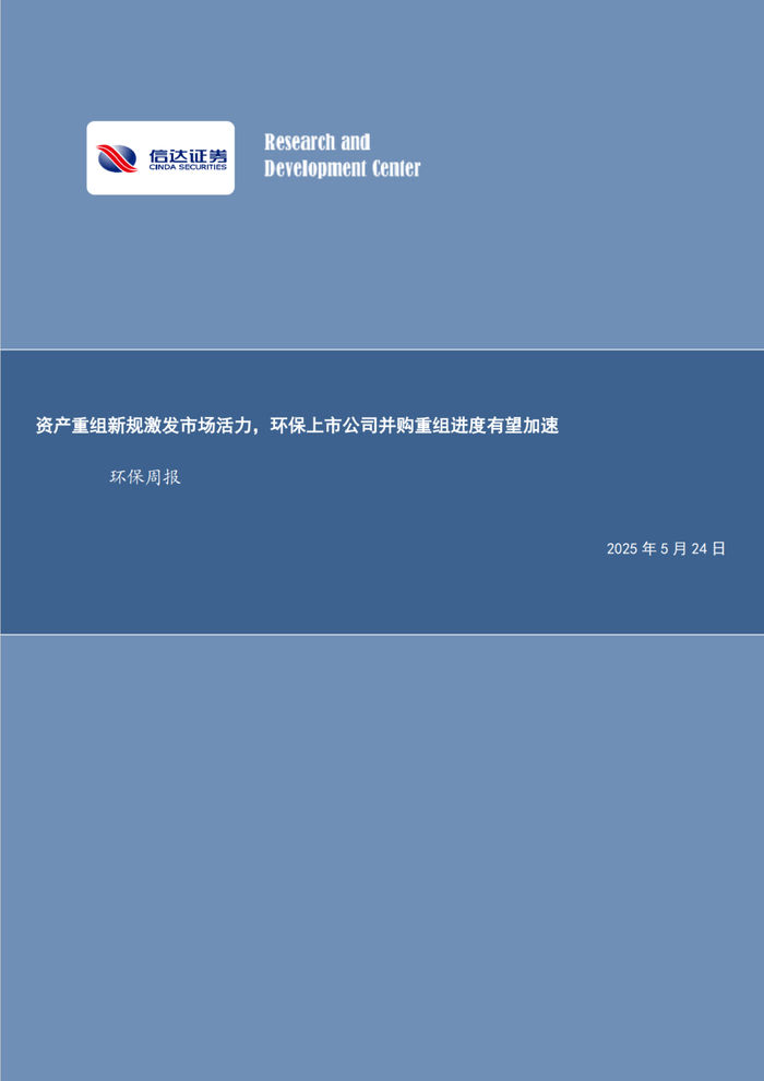 本文源自报告:《环保周报:资产重组新规激发市场活力,环保上市公司并购重组进度有望加速》