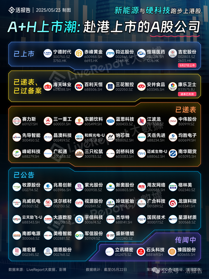 5月23日,佛山海天调味食品在港交所披露聆讯后的招股书,或很快在香港主板挂牌上市,其此前于2025年1月13日递交招股书。公司在A股上市,总市值约人民币2500亿元。中金公司、高盛、摩根士丹利为其联席保荐人。