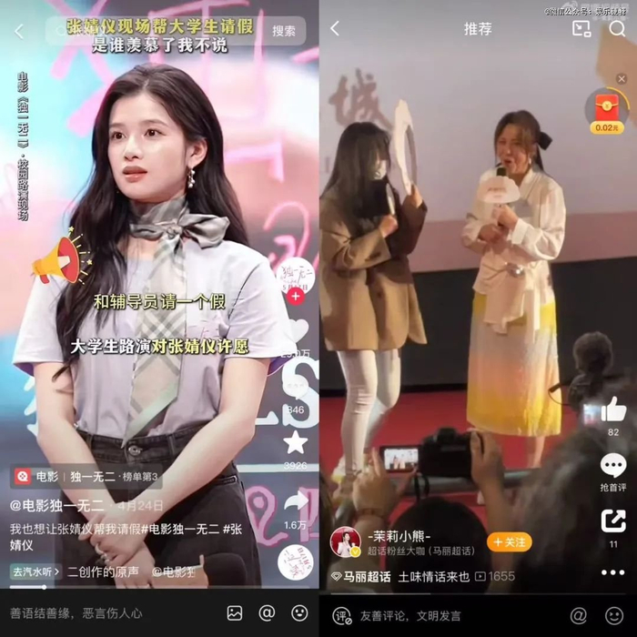 有网友吐槽,以前刷路演视频,还能知道电影讲什么,现在全是段子、金句和发疯。根据眸娱数据,2023年票房TOP10电影的抖音官方账号中,超60%的爆款视频与电影核心内容无关。