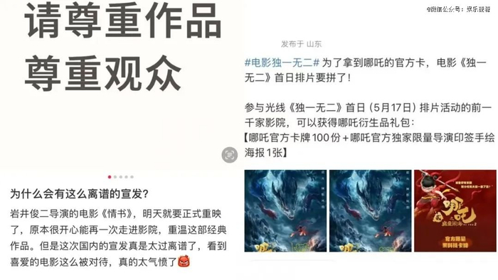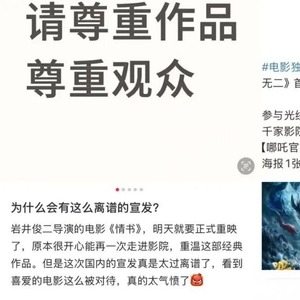 在社交平台搜索“电影宣发”,看到的几乎全是抱怨。“520”档期重映的《情书》,被网友吐槽路演体验极差。莫名其妙的读信环节,让观众如坐针毡地看陌生素人大秀恩爱,与电影内容毫无关联。