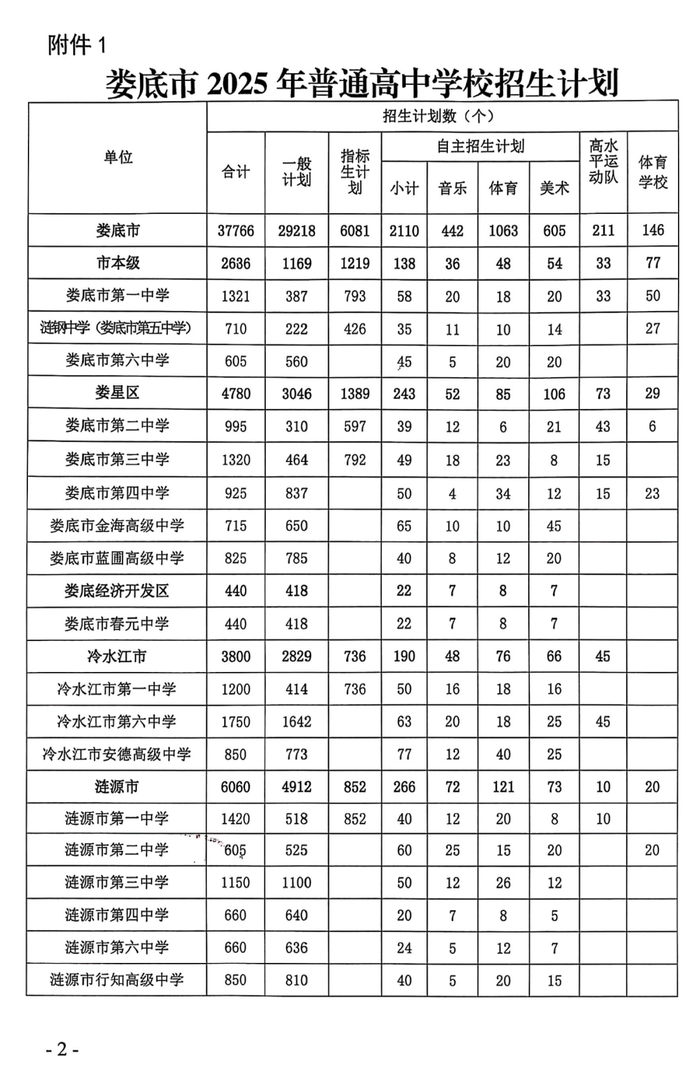 编者按:近日,从娄底市教育局获悉,娄底市教育局向各县市区教育局、娄底经开区社会事务局和市直相关学校下达了2025年高中阶段学校招生计划,其中综合高中计划另行下发。详情见附件:1.娄底市2025年普通高中学校招生计划;2.娄底市2025年示范性普通高中指标生计划;3.娄底市2025年中等职业学校招生计划。