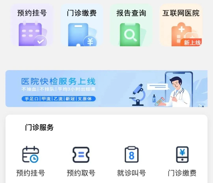 点击“医院快检服务上线”即可