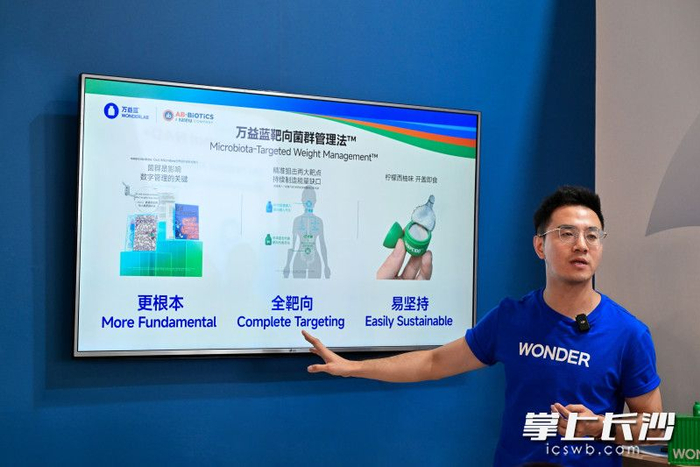 万益蓝靶向菌群管理法由万益蓝WONDERLAB在今年3月首次提出。万益蓝WONDERLAB品牌总监刘彦辰在展会现场也分享了该方案背后的科学逻辑,针对传统体重管理存在的单靶点干预、治标不治本、依从性差三大痛点,通过“菌群—代谢—食欲”三维调控机制,构建能量摄入与消耗的动态平衡模型,真正做到“更根本、全靶向、易坚持”。