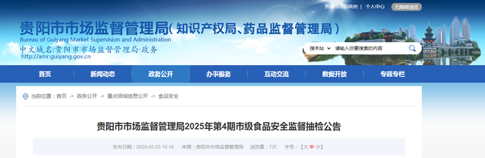 贵阳市市场监督管理局2025年第4期市级食品安全监督抽检公告