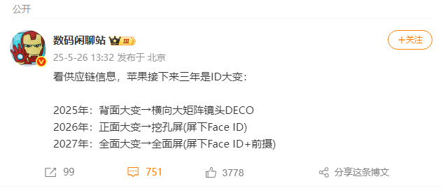爆料,看供应链信息,苹果手机未来三年的ID都有大幅变化,具体如下: