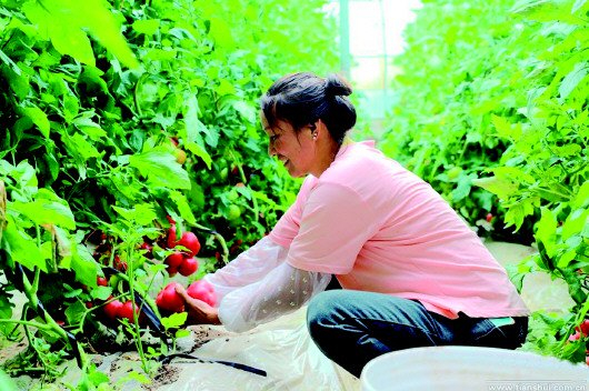 5月22日,走进清水县白驼镇设施农业种植基地,工作人员正在采摘西红柿,郁郁葱葱的蔬菜苗孕育着丰收的希望,白驼人正用智慧将“菜篮子”变成“金饭碗”。