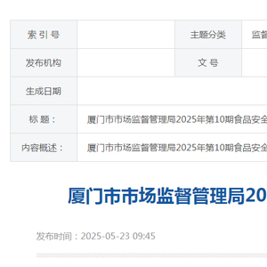 厦门市市场监督管理局2025年第10期食品安全监督抽检信息公告