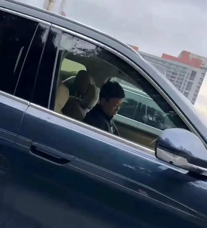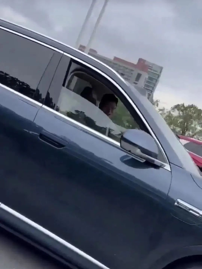 视频显示,拍摄人员向左侧行驶中的车辆大喊“余总,睡着了?”并摁下喇叭,随后车内人员招手,摇下车窗并微笑回应。