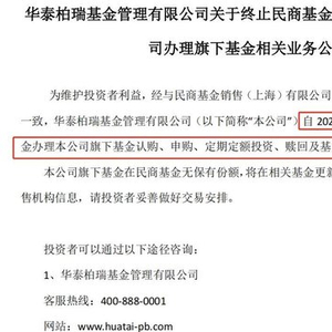 5月24日,华泰柏瑞基金在公告中表示,为维护投资者利益,经与民商基金协商一致,公司自2025年5月26日起终止民商基金办理本公司旗下基金认购、申购、定期定额投资、赎回及基金转换等相关销售业务。