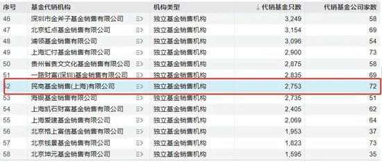 Wind数据显示,截至目前民商基金代销2753只公募产品,代销基金公司数量为72家,代销产品数量在125家独立基金销售机构中位于第52位。