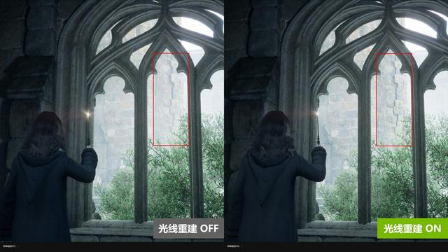 另外光线重建则能够修复一些画面的细节表现,比如图中圈出的部位,开启光线重建后,建筑的光影层次更分明。