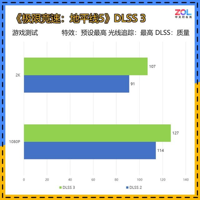 《地平线5》游戏对于显存的要求较高,1080p分辨率下已接8GB显存,所以相对RTX 4060来说提升并不显著。不过iGame GeForce RTX 5060 Ultra W OC 8GB在DLSS 3 2K分辨率下达到仍能达到百帧,对于赛车游戏来说绰绰有余。