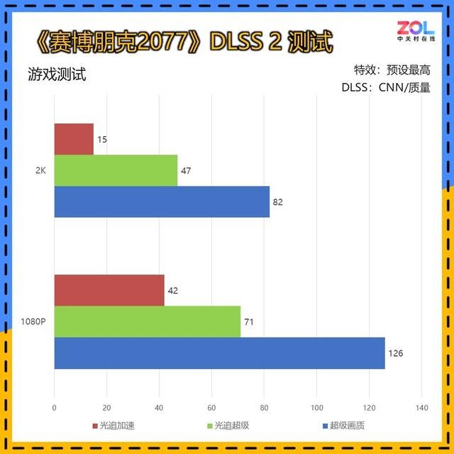 在《赛博朋克2077》所有测试中,由于画质预设较多,为保证缩放比例固定,我们均选择在DLSS 质量模式下进行。