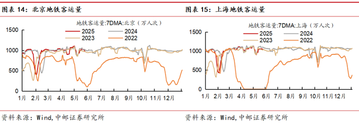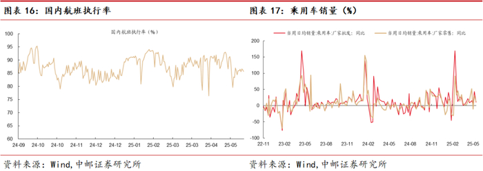 (3)跨境游热度明显升温。受益于240小时过境免签、离境退税/即买即退政策,入境游成为当前促消费的重要推动力。截至5月19日,深圳边检总站今年查验出入境人员突破1亿人次;据北京大兴机场出入境边防检查站统计,2025年1月1日到5月15日,北京大兴机场口岸出入境人员数量突破200万人次,较去年同期增长34.4%,入境外国人同比增长58%;截至2025年5月7日13:00时,今年以来经横琴口岸出入境旅客超1000万人次,同比增长32%,较去年提前46天,创口岸开通以来最快纪录。