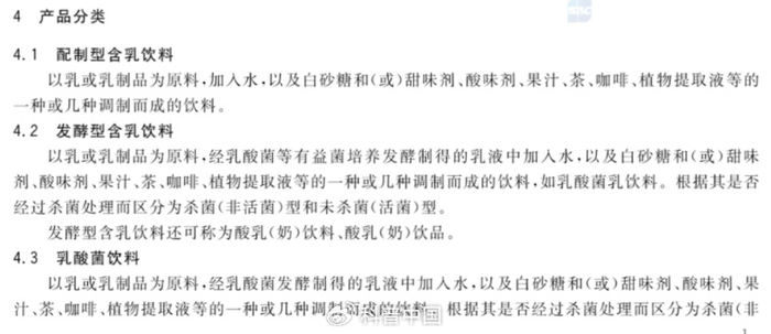 我国对于牛奶和酸奶有非常严格的分类,每种都有国标来监督其安全标准。我们日常经常会喝到的“牛奶”有以下几个分类。