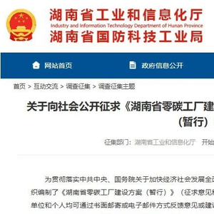 5月22日,湖南省工信厅向社会公开征求《湖南省零碳工厂建设方案(暂行)》(征求意见稿)《湖南省零碳园区建设方案(暂行)》(征求意见稿)意见(以下分别简称《零碳工厂建设方案》《零碳园区建设方案》)。