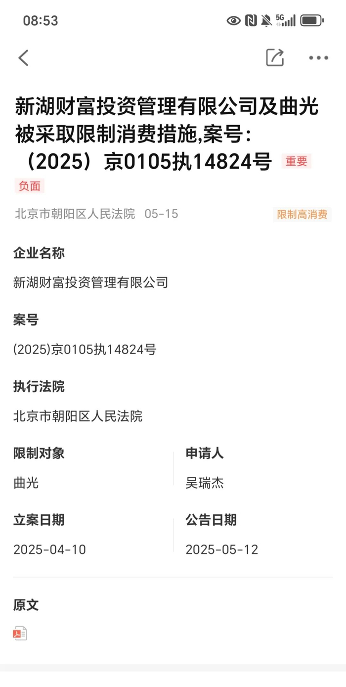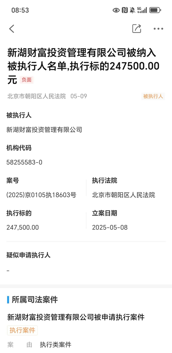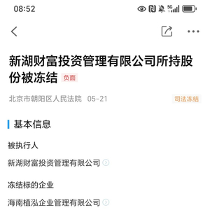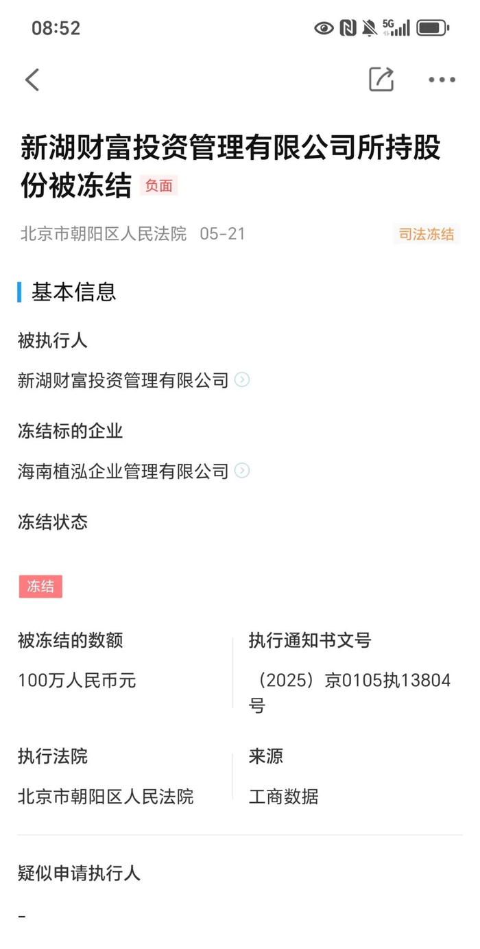 近日,企业查询平台显示,新湖财富新增所持股份被冻结、被采取限制消费措施、被纳入被执行人名单等多项信息。